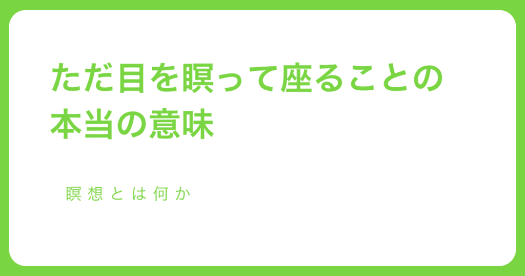 ただ目を瞑って座ることの、本当の意味── 瞑想とは何か