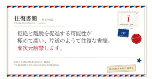 拒絶と離脱を促進する可能性が極めて高い、片道のようで往復な書簡。虚次元解禁します。