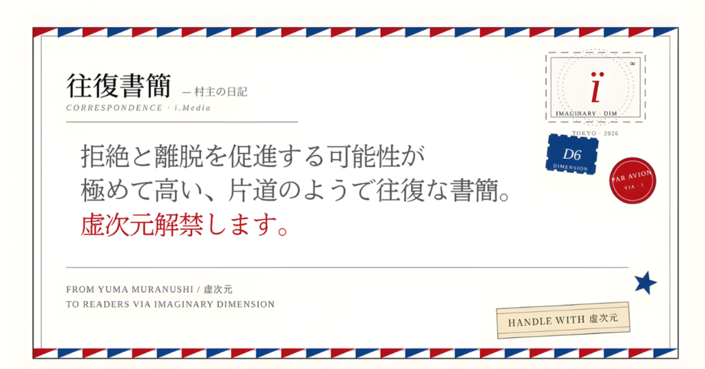 拒絶と離脱を促進する可能性が極めて高い、片道のようで往復な書簡。虚次元解禁します。