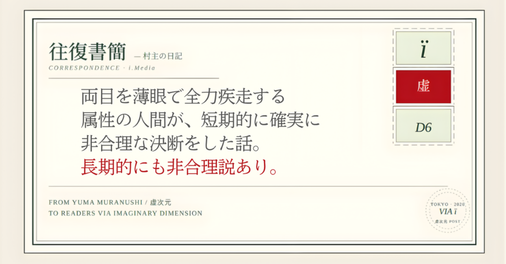 両目を薄眼で全力疾走する属性の人間が、短期的に確実に非合理な決断をした話。長期的にも非合理説あり。