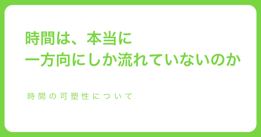 時間は、本当に一方向にしか流れていないのか── 時間の可塑性について